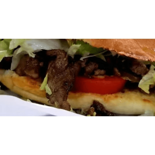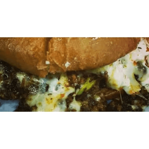 Grilled meat with ham grilled onions & jalapenos & cheese