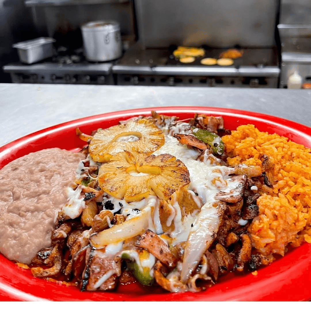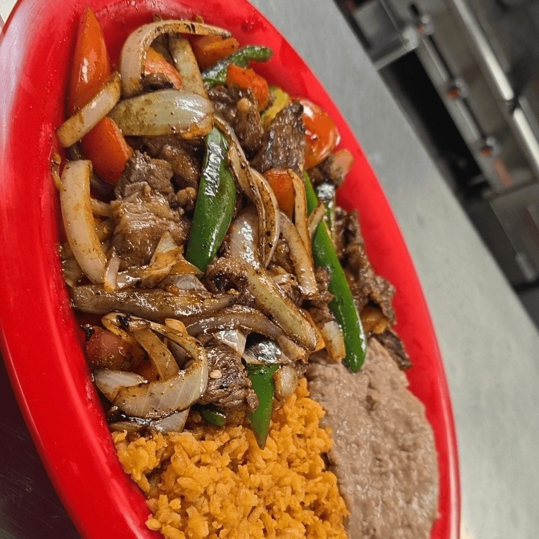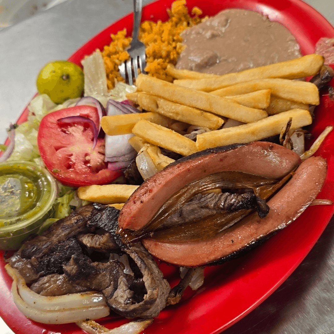 Grilled steak, chicken, chorizo, rice, beans, cactus and 2 cheese quesadillas