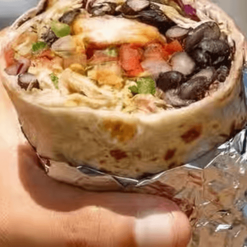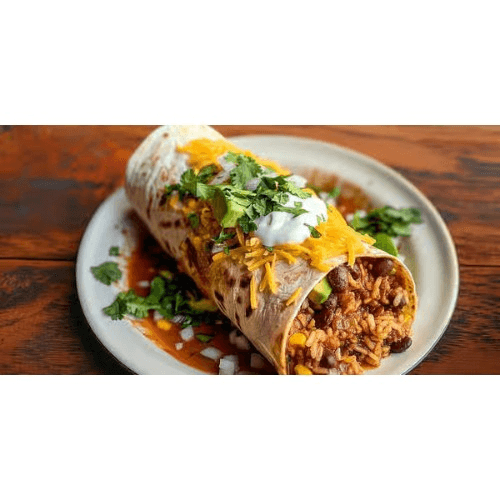 Choice of meat, rice, beans, sour cream, cheese, onion, cilantro and avocado