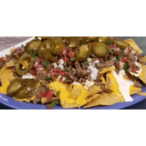 French fries with choice of meat asada, pastor, pollo, sour cream, jalapenos and cheese