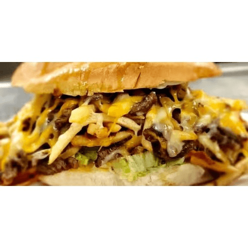 Steak, 3 cheeses, guacamole, lettuce, tomato and French fries